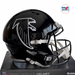 Atlanta Falcons Full Size Speed Replica NFL Helmet by Riddell. This full size Falcons helmet is designed with a non-wear plate and molded foam jaw pads. a steel polyvinyl-coated face mask, 4-pt chin strap, and elliptical air vents. NFL Team name on back bumper (except Chiefs, Steelers and Giants). The officially licensed NFL helmet is great for autographs and features Falcons team logo decals on both sides. The striking shape of the future. NFL Falcons Replica Speed helmet size medium measures: 12.75"(L), 9.25"(W), 9.75"(H). NFL Atlanta Falcons Full Size Speed Replica Helmet. (NOT FOR WEARING)