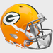 Green Bay Packers Full Size Authentic Speed Throwback NFL Helmet by Riddell. This full size Packers helmet is designed with extended mandible (jaw area) protection, a steel polyvinyl-coated face mask, chin strap, increased padding, an integrated facemask attachment system and elliptical air vents. NFL Team name on back bumper (except Chiefs, Steelers and Giants). The officially licensed Green Bay Packers helmet is great for autographs and features Packers team logo decals on both sides. The striking shape of the future. NFL Packers Authentic Revolution Speed helmet size is 13.5"(L) x 9.75"(W) x 10.25"(H). NFL Green Bay Packers Full Size Helmet.